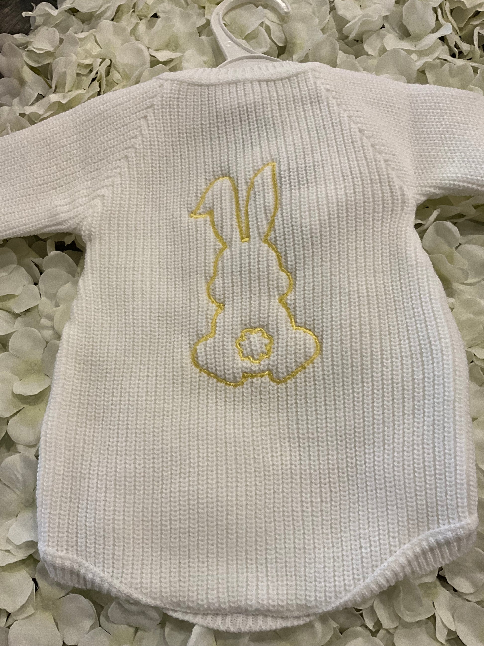 Dandelion Knitted Romper with Embroidered Bunny on Back and Front