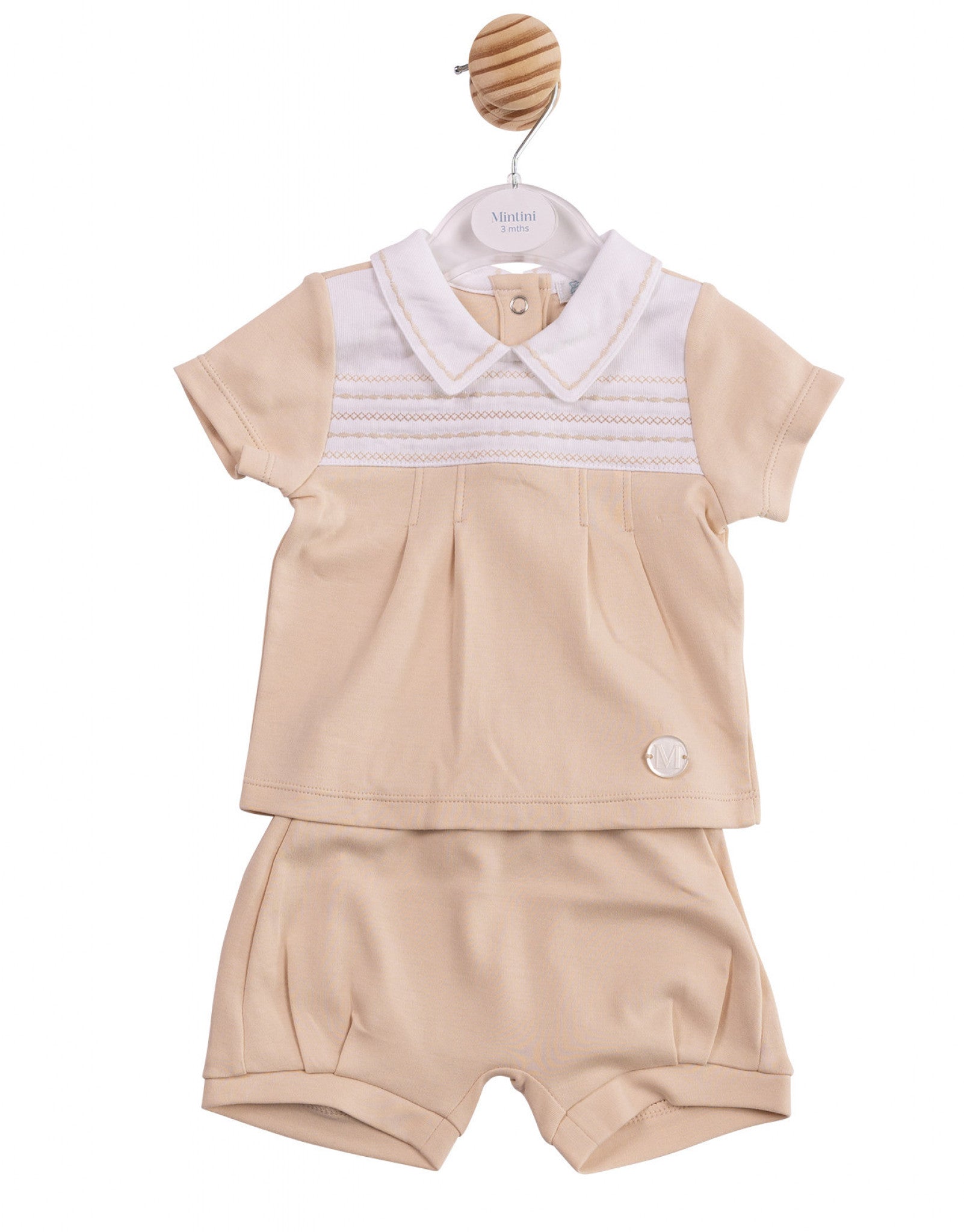 Mintini Boys Embroidered Panel Two Piece Beige Short Set